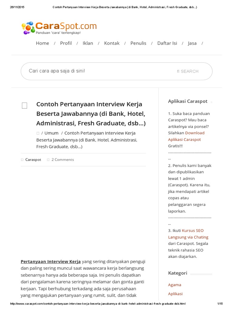 Beberapa pertanyaan yang ditanyain pas interview 1. Contoh pertanyaan dan jawaban interview di restoran, pertanyaan interview bahasa inggris, pertanyaan interview dan jawabannya, interview 20 pertanyaan interview dan jawabannya untuk fresh graduate sumber : Sebelum menghadiri interview untuk posisi sales, ada baiknya mengetahui peluang pertanyaannya. Eps topik skill tes interview untuk persiapan skill tes wawancara tahun 2018. Meskipun terlihat membingungkan, anda harus mantap dan jujur.